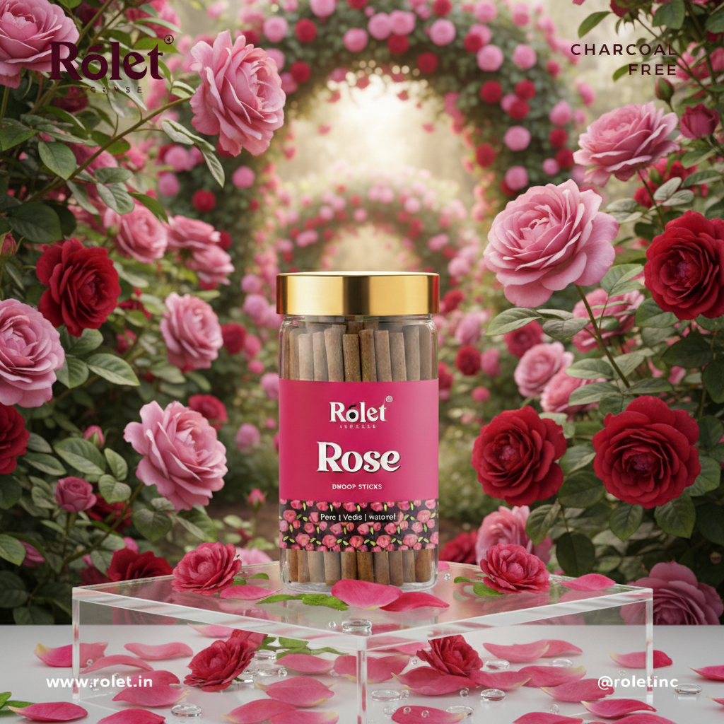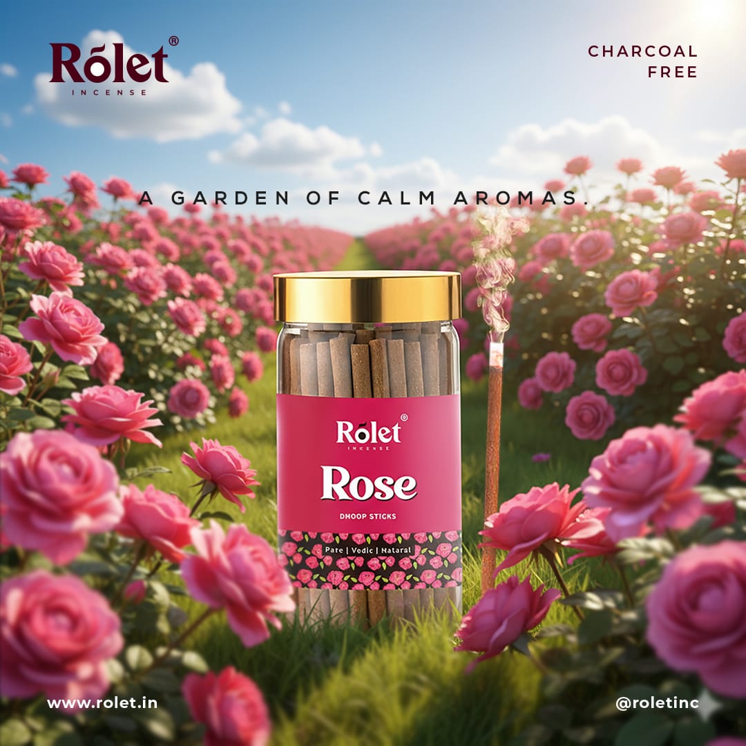 Experience “A Garden of Calm Aromas” with our premium, handcrafted rose dhoop sticks. Specially designed for those who seek a pure and spiritual atmosphere, these bambooless sticks offer a long-lasting, soothing fragrance without the harshness of charcoal.